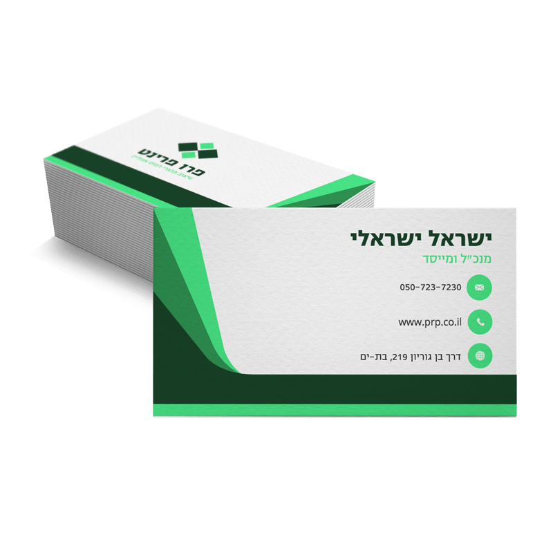 כרטיסי ביקור מודפסים על נייר כרומו 300 גרם לבן.