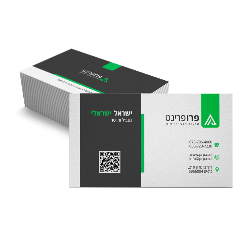 כרטיסי ביקור מודפסים על נייר כרומו 300 גרם לבן.