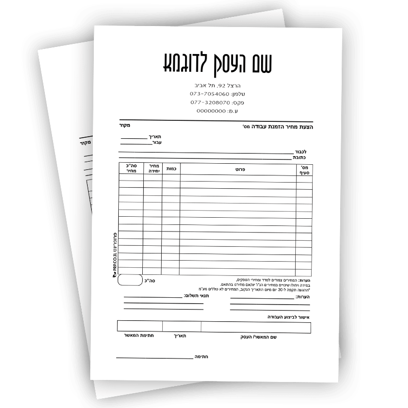 פנקסים הצעת מחיר איי 4 שלם