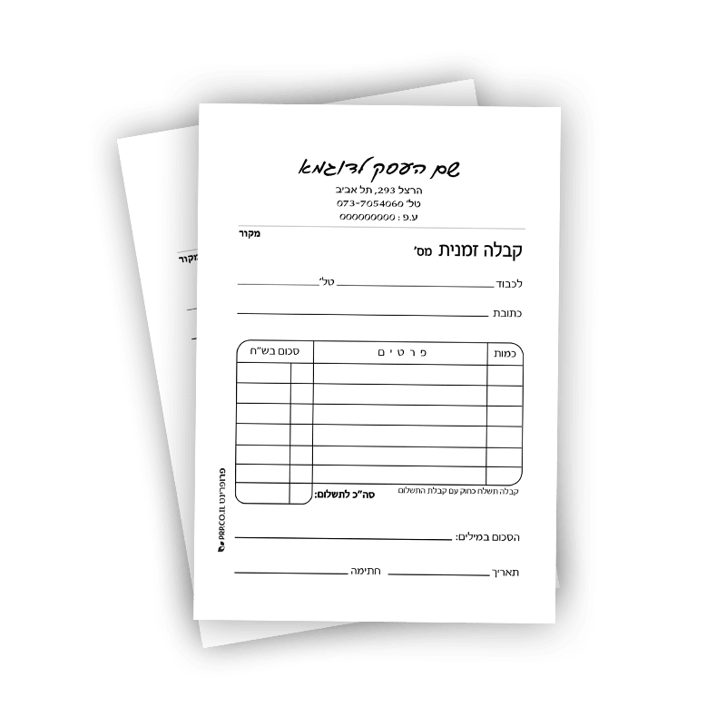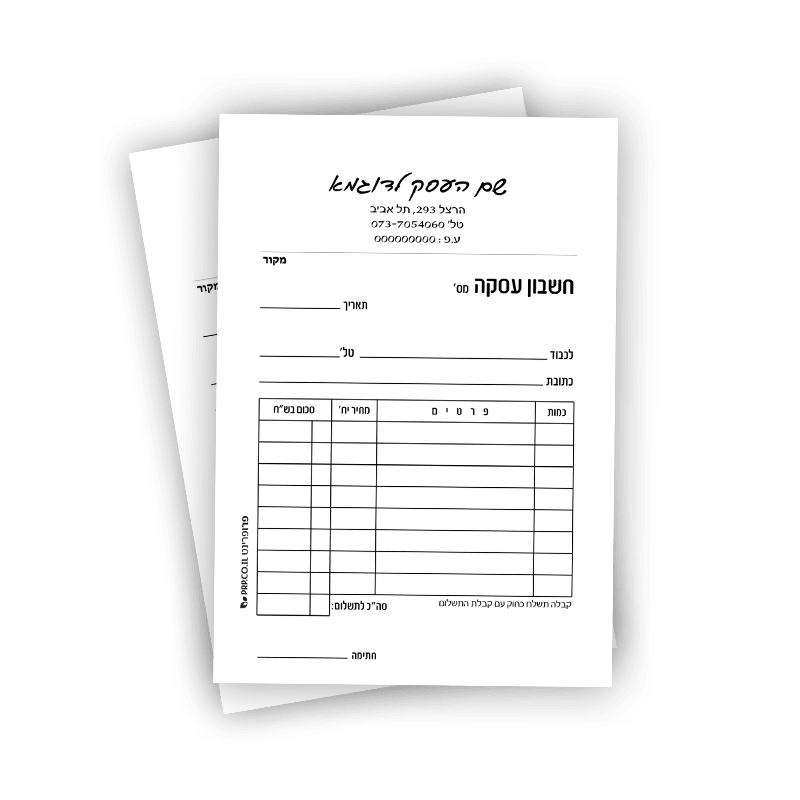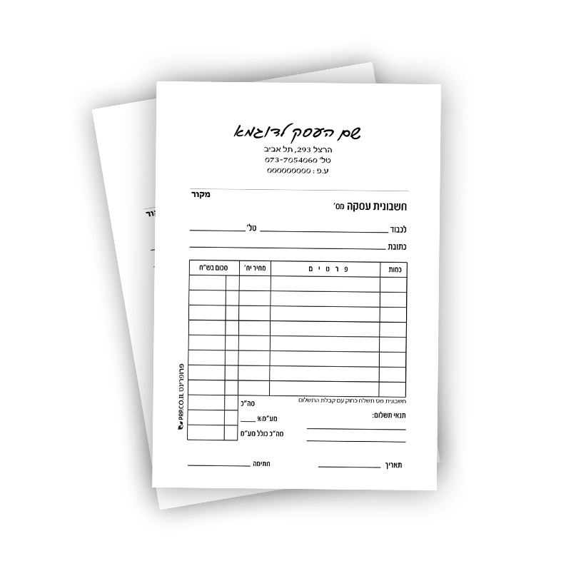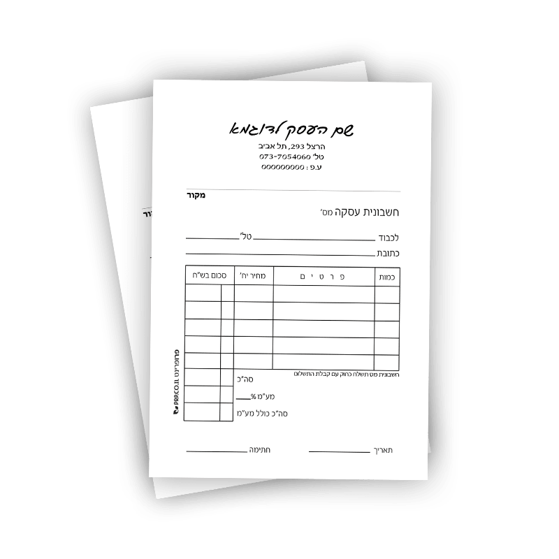 עיצוב והדפסת פנקסי חשבונית מס / קבלה איי 5 אונליין.